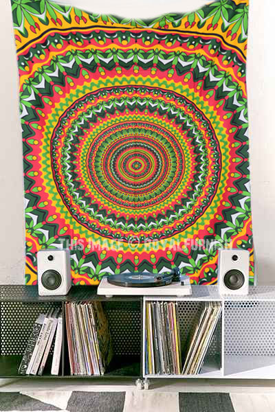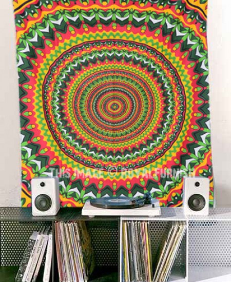 Twin Vibrant Multicolor Mandala Hippie Dorm Room Decor Tapestry Wall Hanging