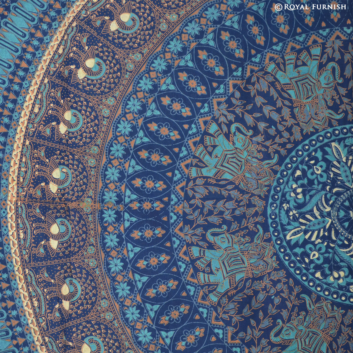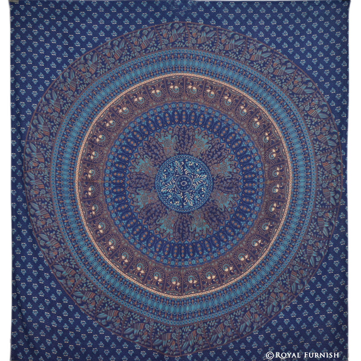Beautiful Indian bird paradise and elephant designed floral mandala tapestry wall hanging gives a royal touch to your home interior. The tapestry consist vibrant color, round circle in middle and stunning floral elephant and birds design which gives a new look to your home. It can be used in different ways to decor home like as bedspread, tapestry, wall hanging, bed cover, Coverlet, sofa cover. It is pure cotton Indian mandala tapestry bed cover which is perfect example of Rajasthan screen printed bedspread bedding sheet.
